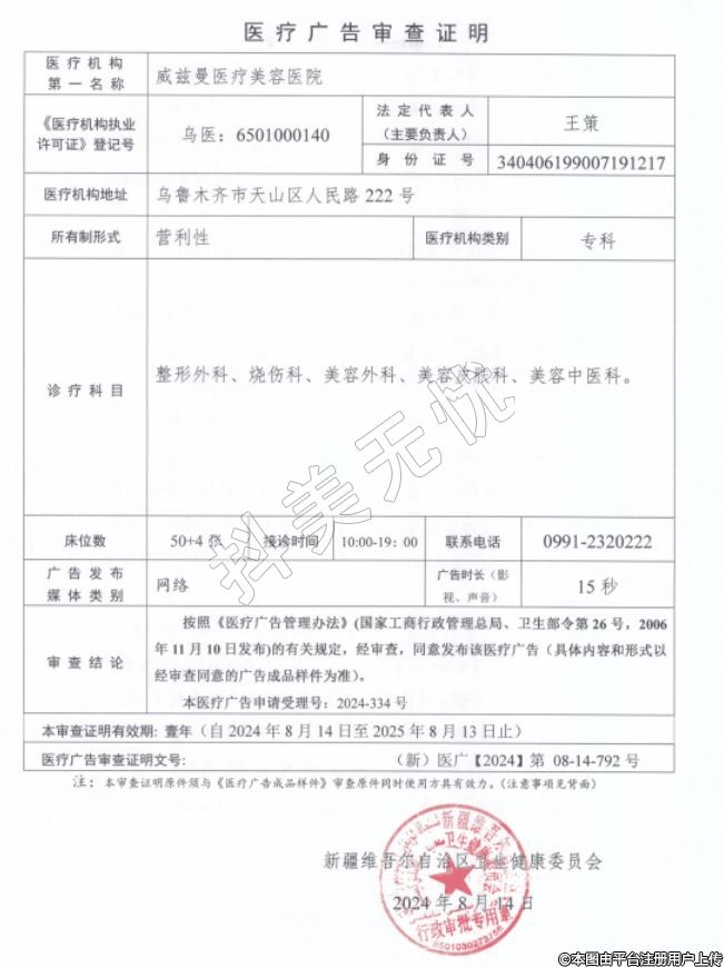 新疆威兹曼整形美容医院(新整)始建于2007年,是经自治区卫生厅批准设立的二级整形美容专科医院,医院开设有美容外科、麻醉科、口腔科、美容皮肤科、麻醉科、住院部。