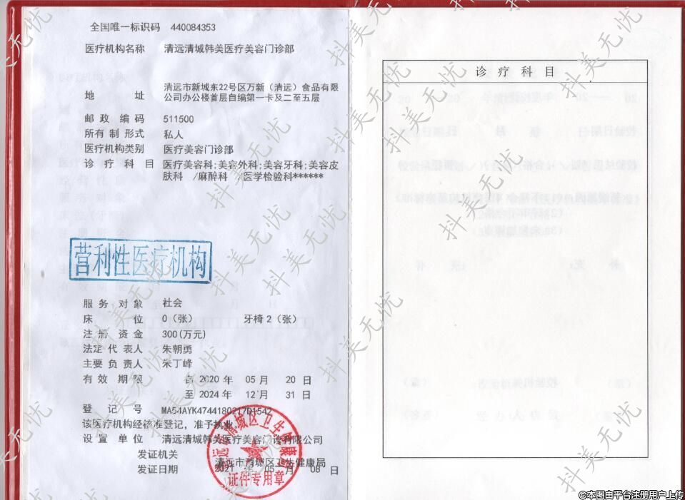机构名称:清远清城韩美医疗美容门诊部