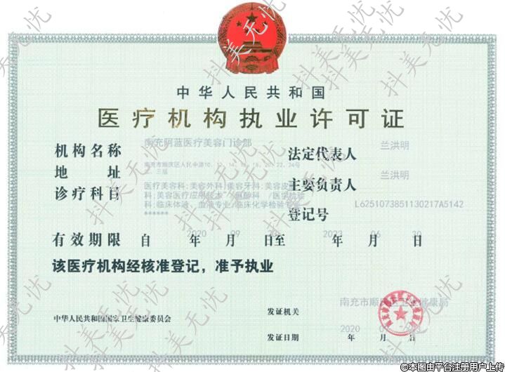 诊疗科目科:医疗美容科;美容外科;美容牙科;美容皮肤科;美容医疗应用技术/麻醉科/医学检验科;临床体液、血液专业;临床化学检验专业******