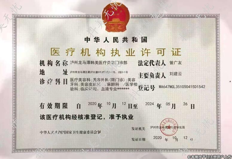 机构名称:泸州龙马潭韩美医疗美容门诊部