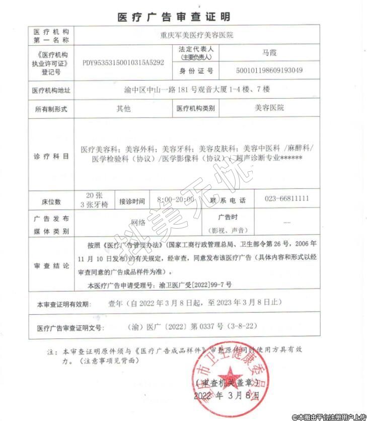 发证机关:重庆市渝中区卫生和计划生育委员会