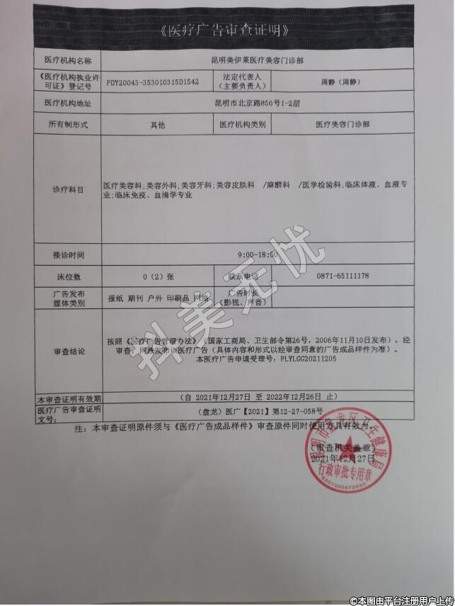 机构名称:昆明美伊莱医疗美容门诊部