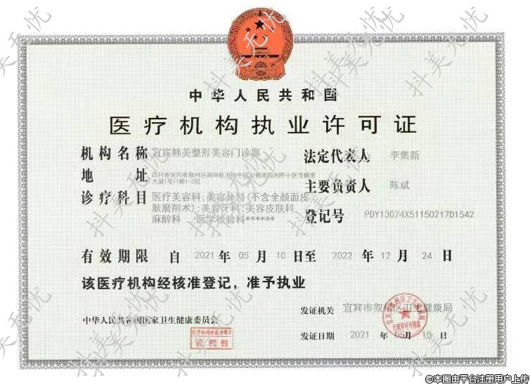 诊疗科目:医疗美容科;美容外科(不含全颜面皮肤磨削术);美容牙科;美容皮肤科/麻醉科/医学检验科******