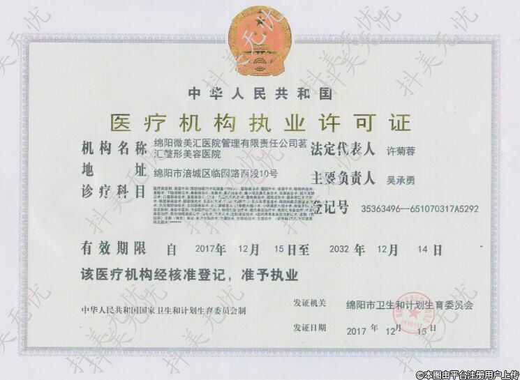 机构名称:绵阳微美汇医院管理有限责任公司茗汇整形美容医院