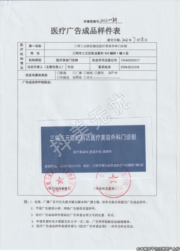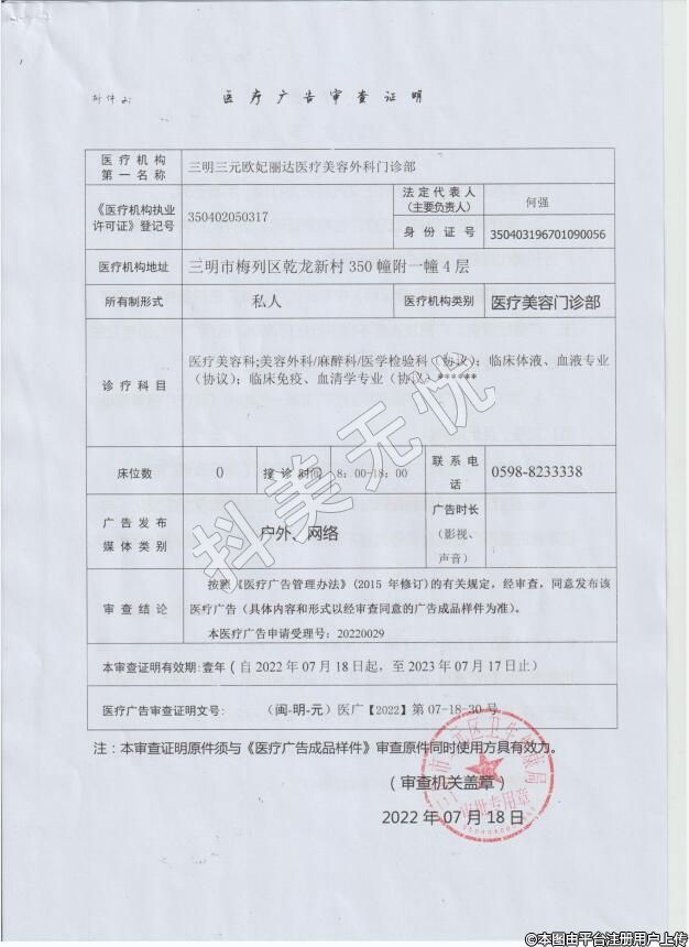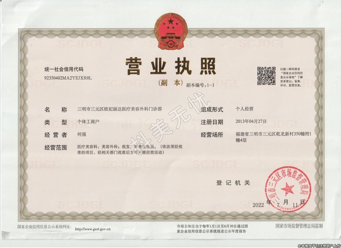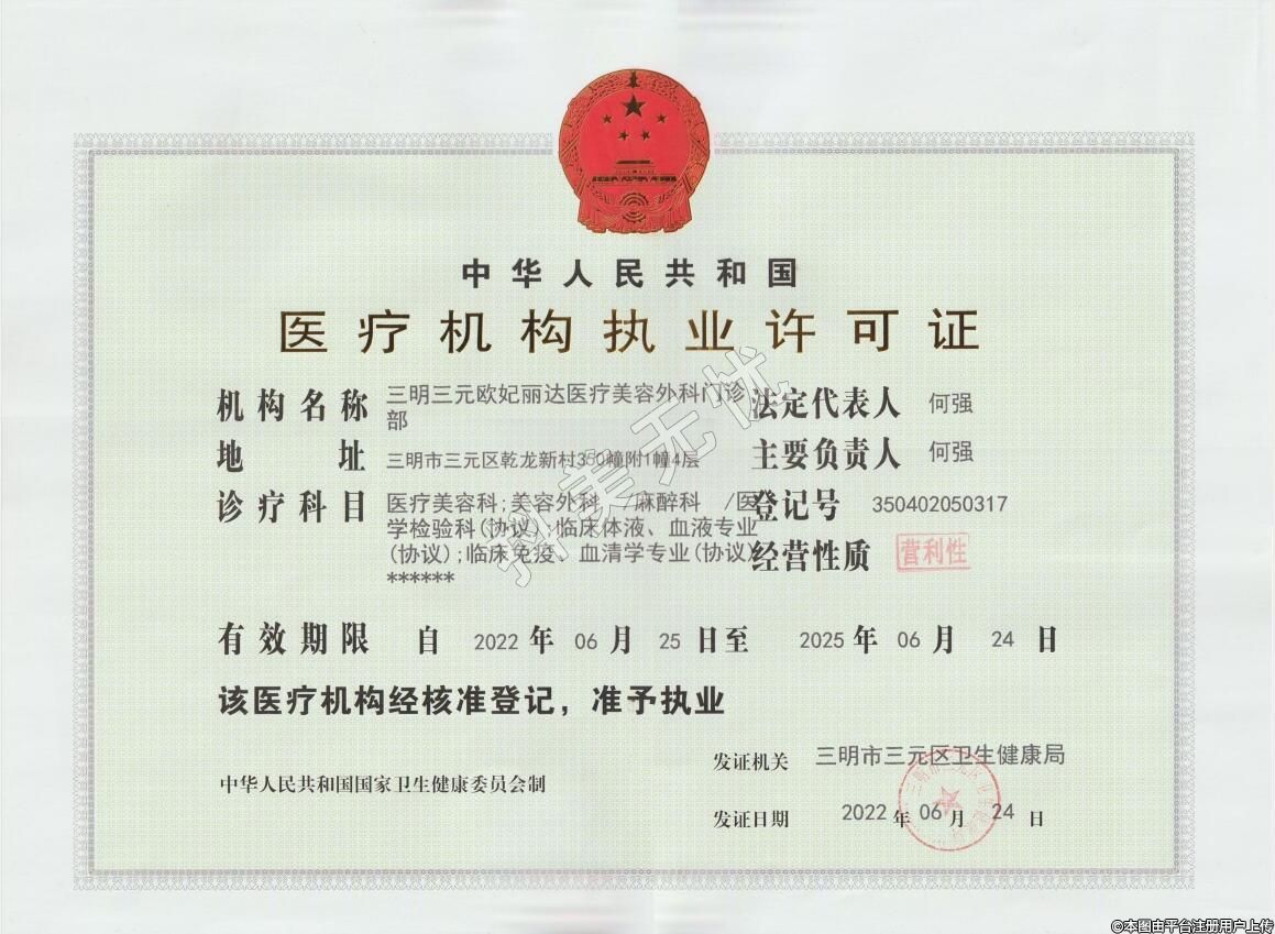机构名称:三明三元欧妃丽达医疗美容外科门诊部