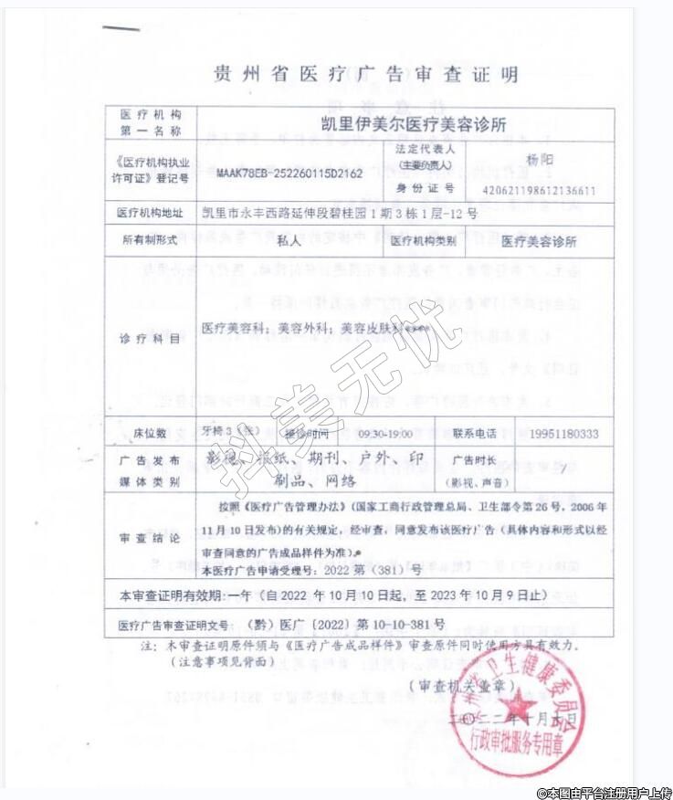 机构名称:凯里伊尔美医疗美容诊所