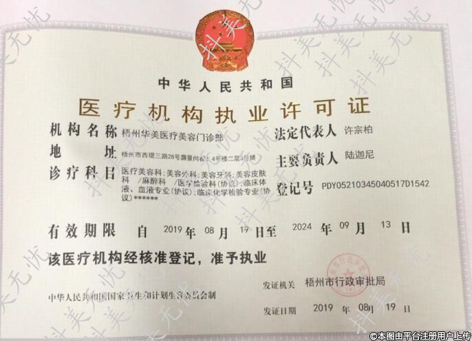机构名称:梧州华美医疗美容门诊部