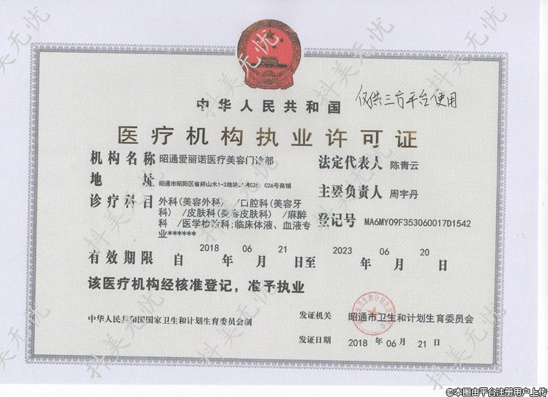 机构名称:昭通爱丽诺医疗美容门诊部