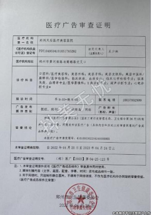 机构名称:郑州天后医疗美容医院