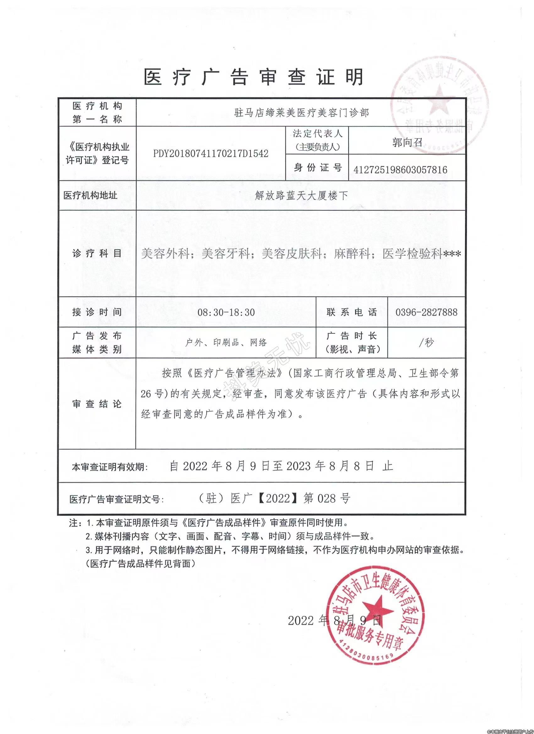 机构名称:驻马店缔莱美医疗美容门诊部
