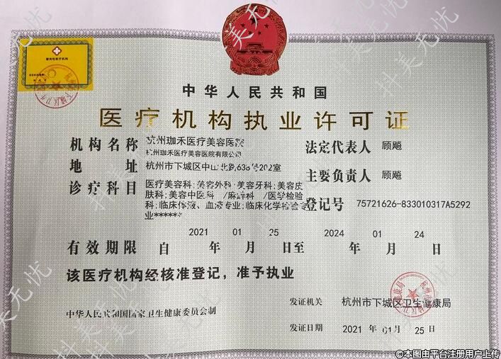 机构名称:杭州珈禾医疗美容医院 杭州珈禾医疗美容医院有限公司