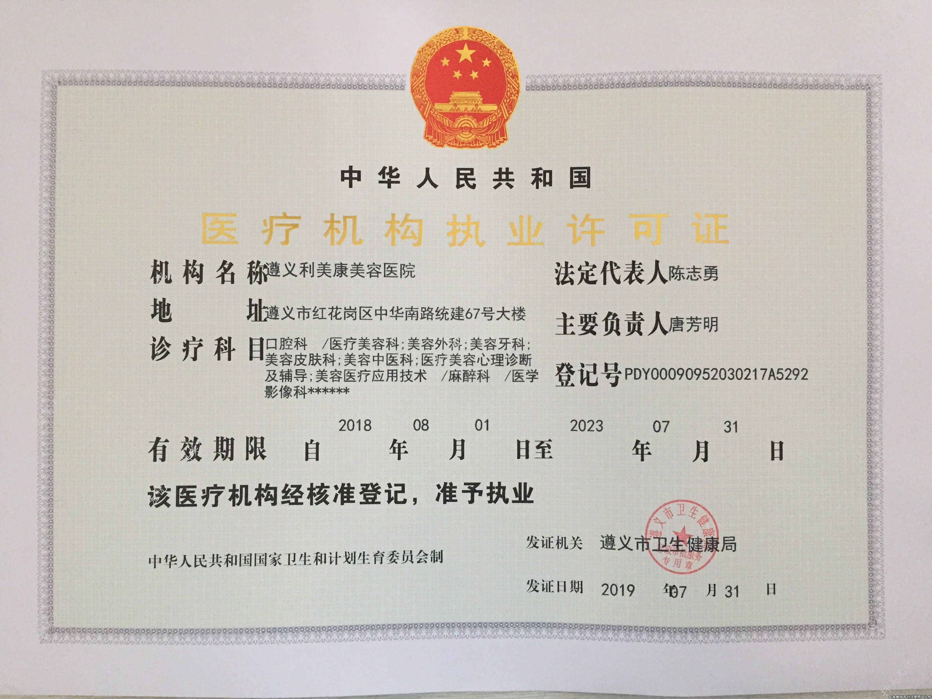 发证机关:遵义市卫生健康局