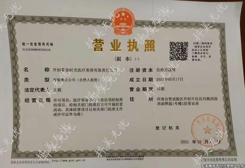 机构名称:开封莫奈时光医疗美容有限责任公司