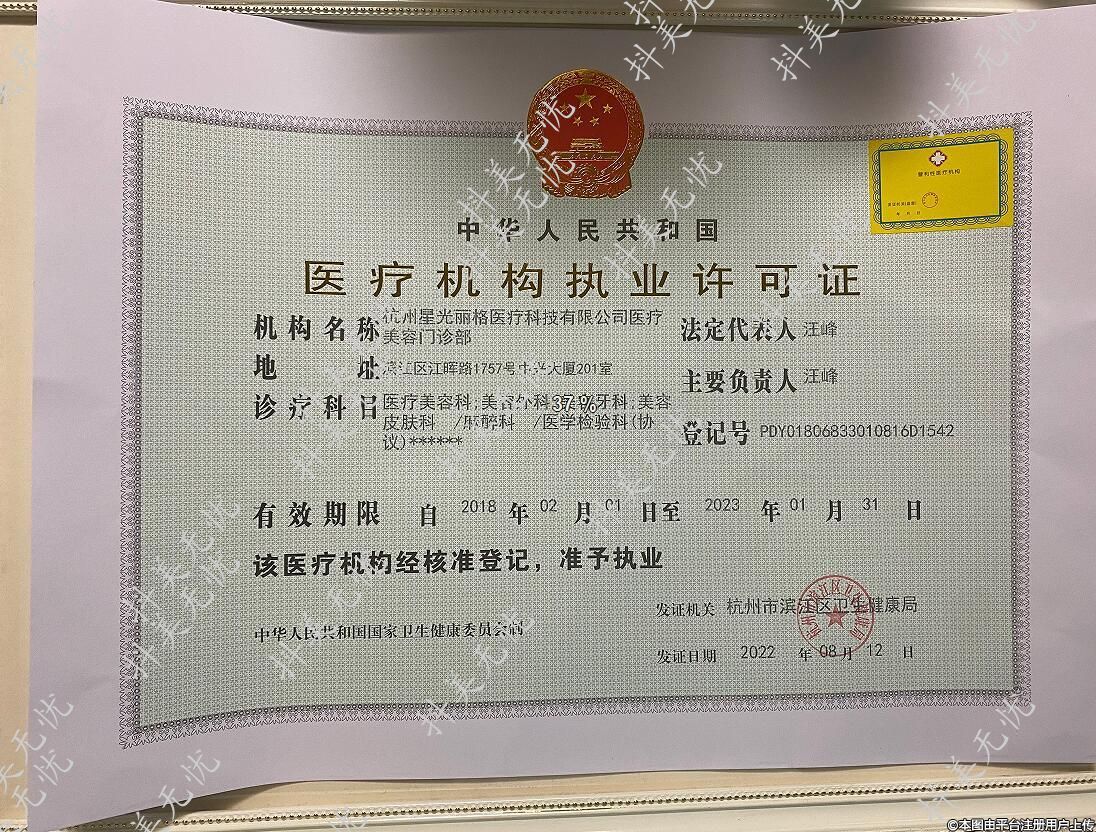 机构名称:杭州星光丽格医疗科拨有限公司医疗美容门诊部