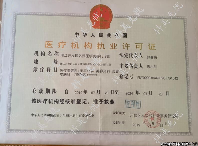 诊疗科目:医疗美容科;美容外科;美容牙科:美容皮肤科/麻醉科******