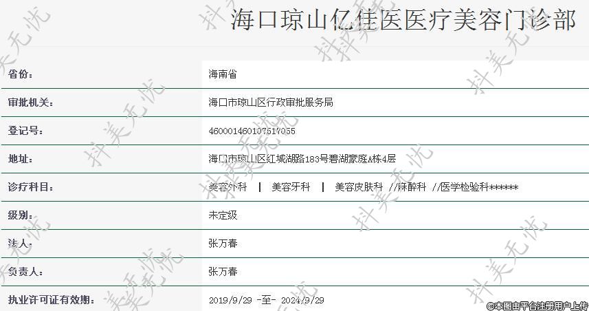 机构名称:海口琼山亿佳医医疗美容门诊部