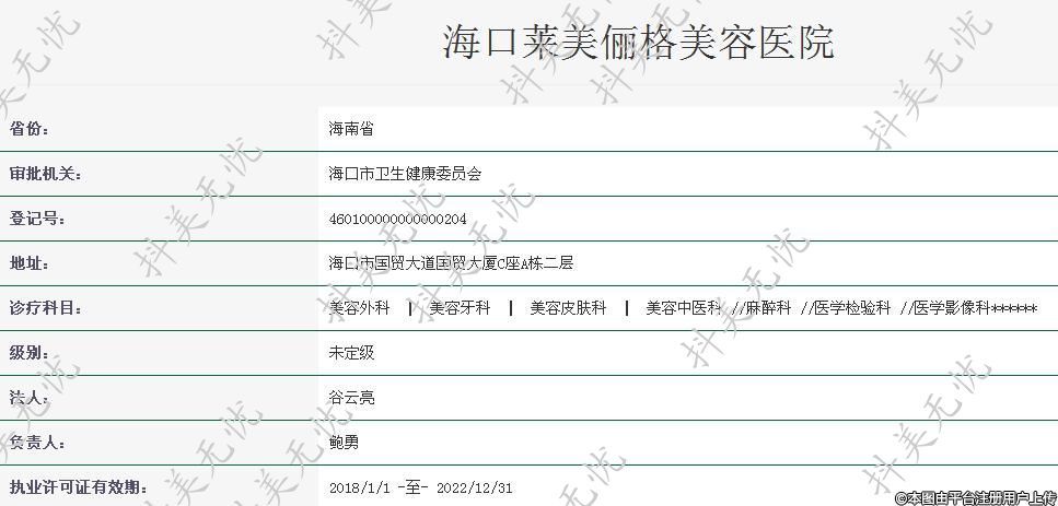 机构名称:海口莱美俪格美容医院