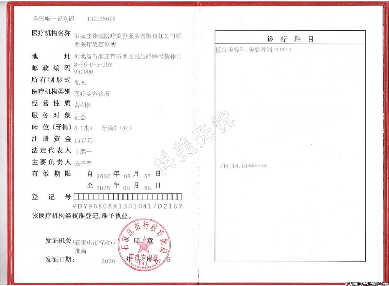 医疗机构名称:石家庄翎泷医疗美容服务有限责任公司桥西医疗美容诊所