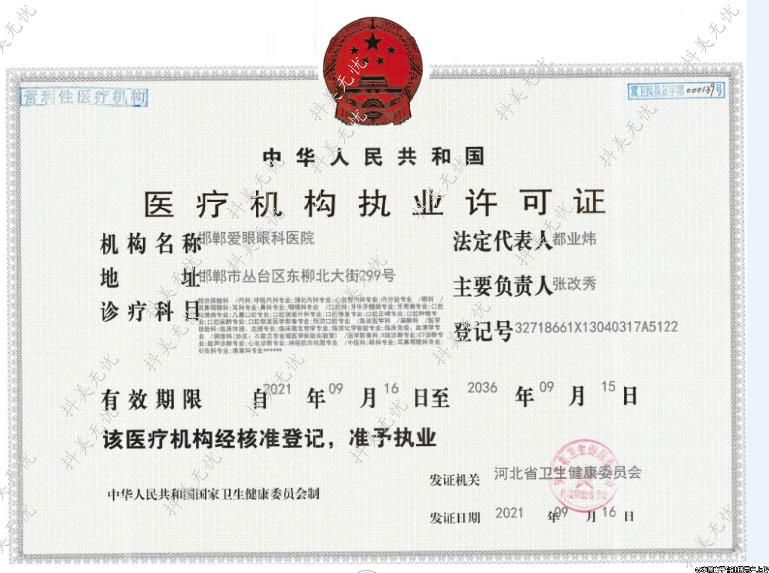 发证机关:河北省卫生健康委员会