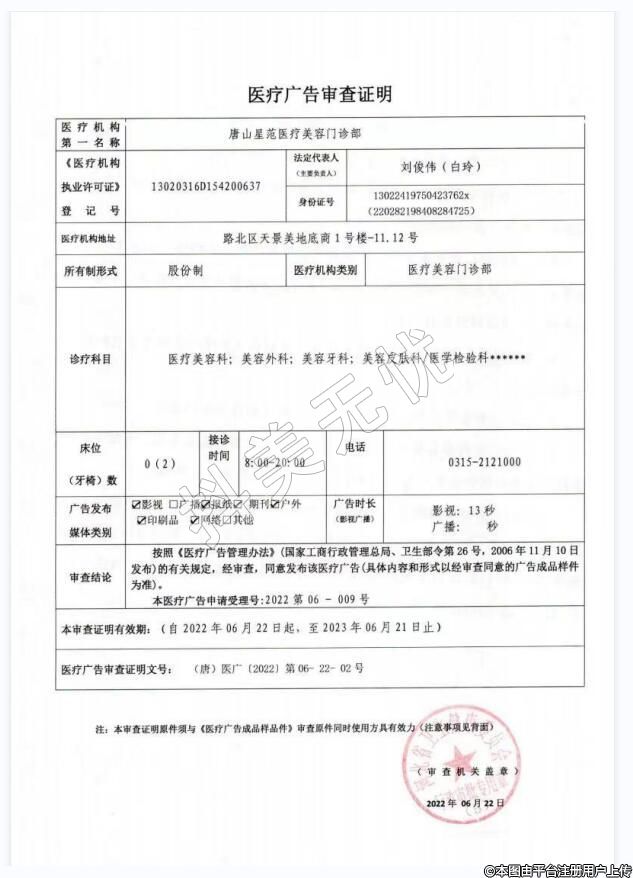 机构名称:唐山星范朝阳道医疗美容门诊部