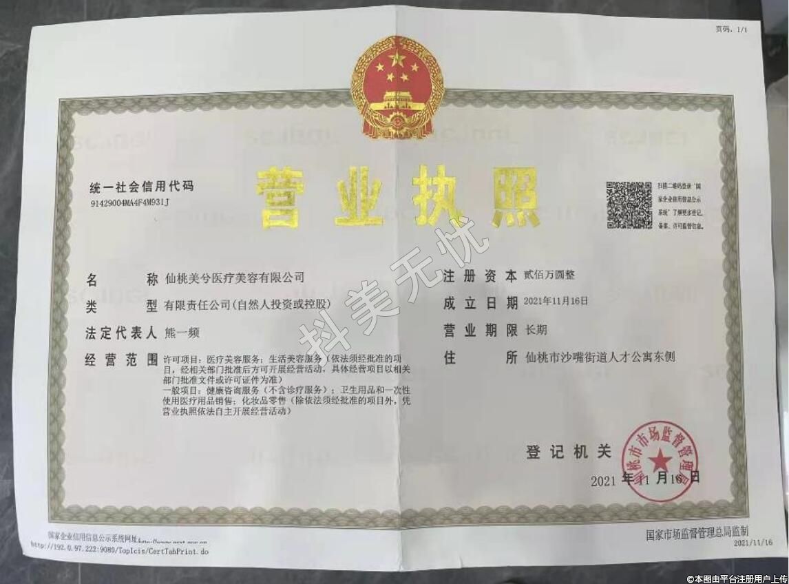 机构名称:仙桃美兮医疗美容门诊音部