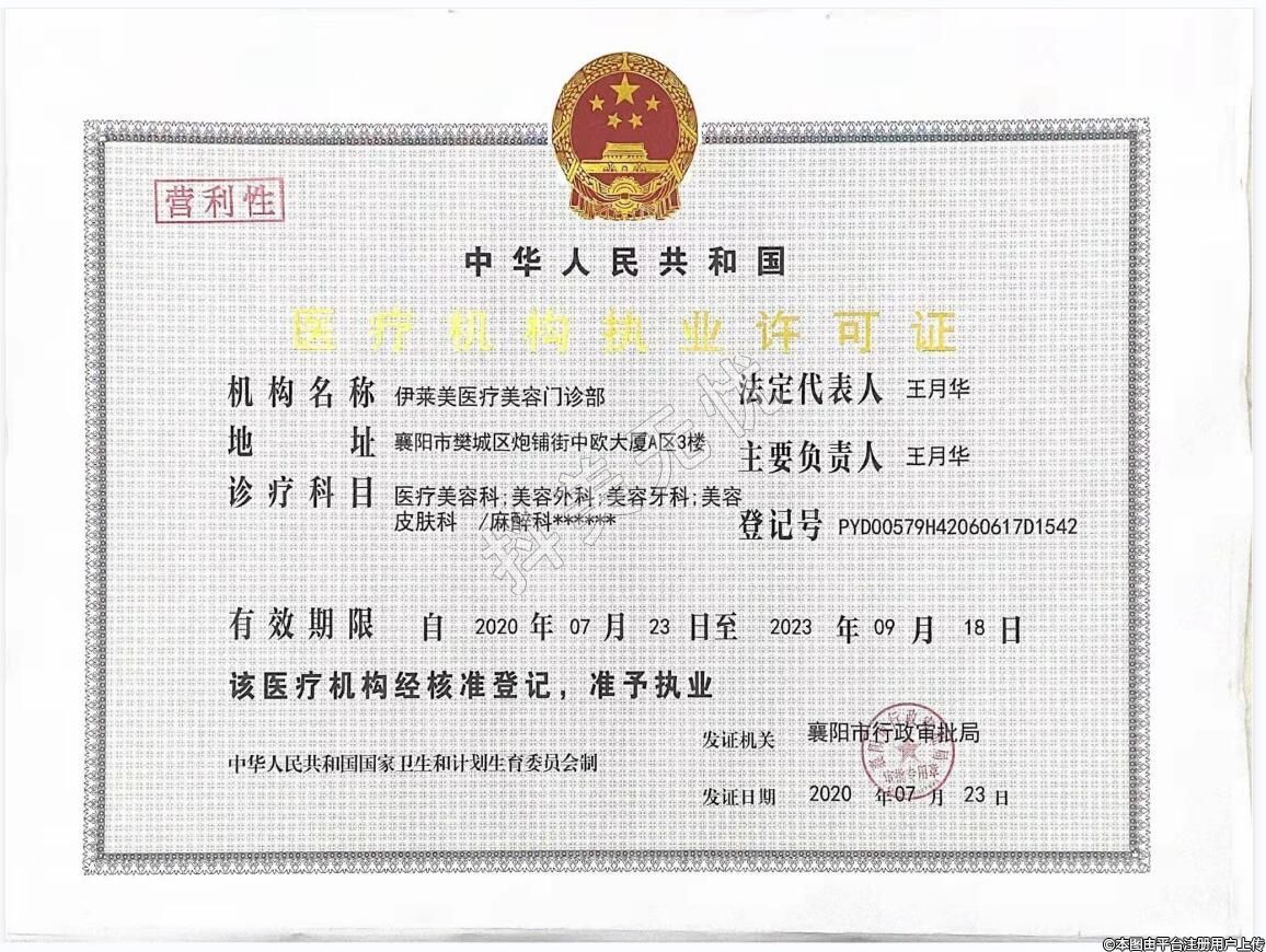 诊疗科目:医疗美容科;美容外科;美容牙科;美容皮肤科/麻醉科******