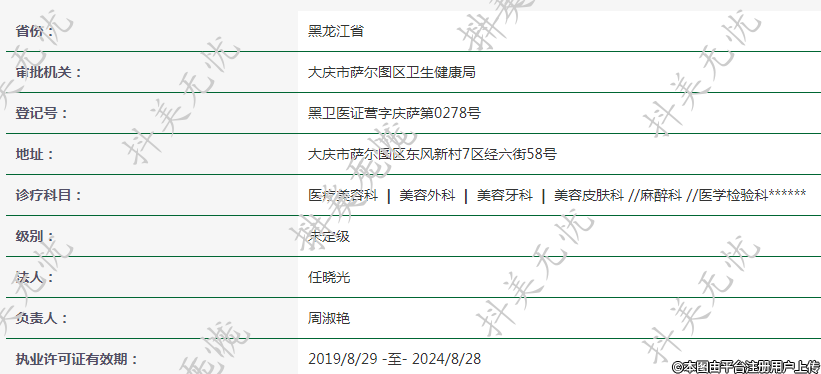 登记号:黑卫医证营字庆萨第0278号