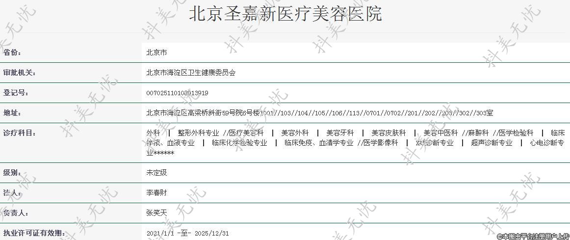 机构名称:北京圣嘉新医疗美容医院