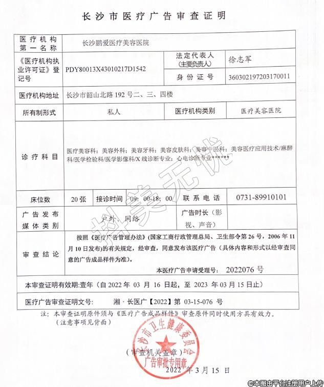 诊疗科目:医疗美容科;美容外科;美容牙科;美容皮肤科;美容中医科;美容医疗应用技术/麻醉科/医学检验科/医学影像科;X线诊断专业;心电诊断专业*******