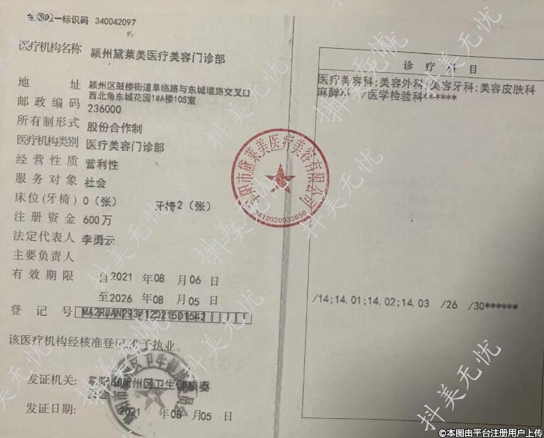 医疗机构名称:颍州黛莱美医疗美容门诊部