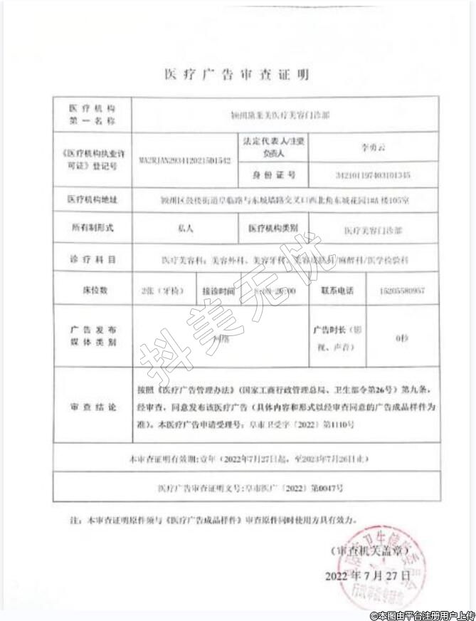 诊疗科目:医疗美容科:美容外科;美容牙科:美容皮肤科麻醉科/医学检验科******