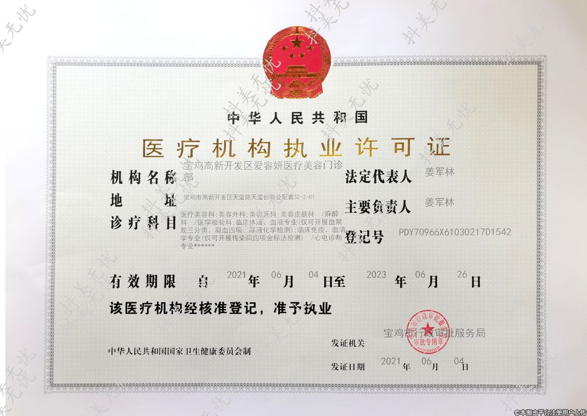 机构名称:宝鸡高新开发区爱容妍医疗美容门诊部