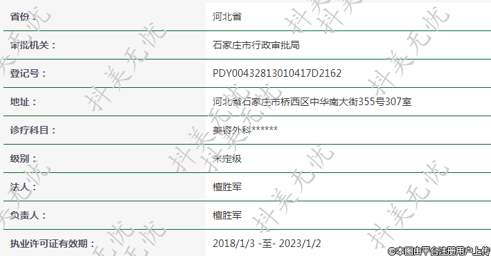 诊疗科目: 美容外科******