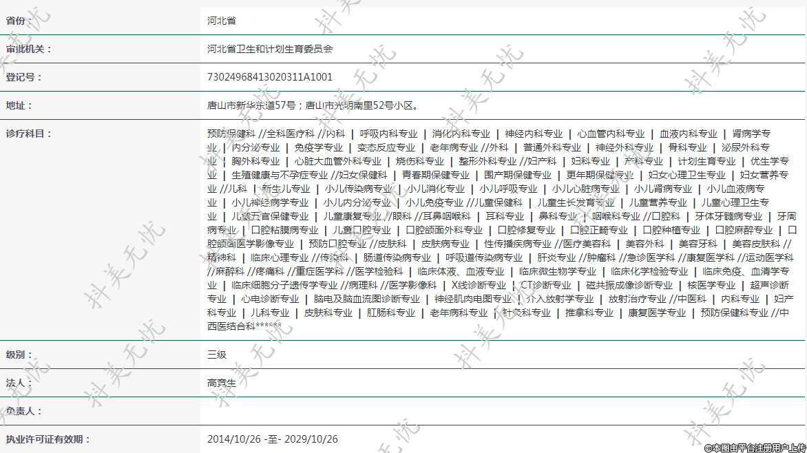 执业许可证有效期:2014/10/26 -至- 2029/10/26