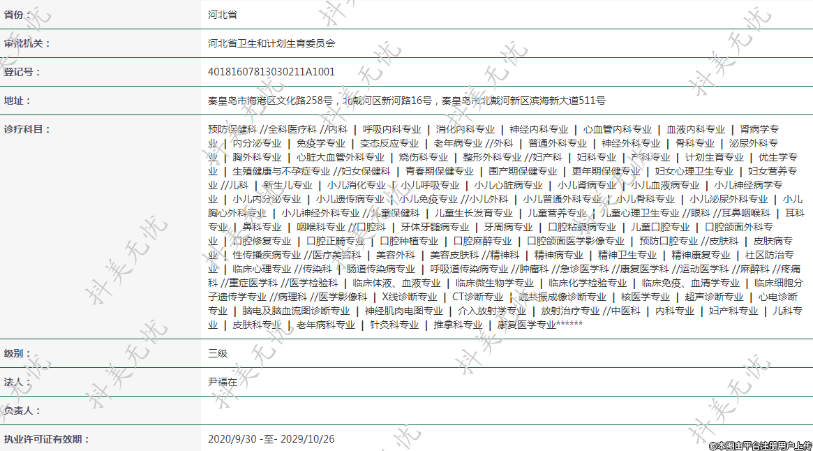 执业许可证有效期:2020/9/30 -至- 2029/10/26