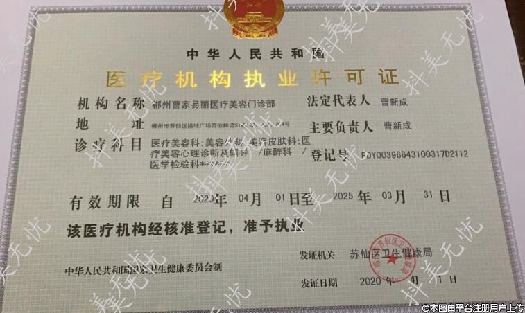 机构名称:郴州曹家易丽医疗美容门诊部