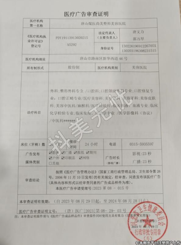 医疗机构名称:唐山煤医尚美整形美容医院