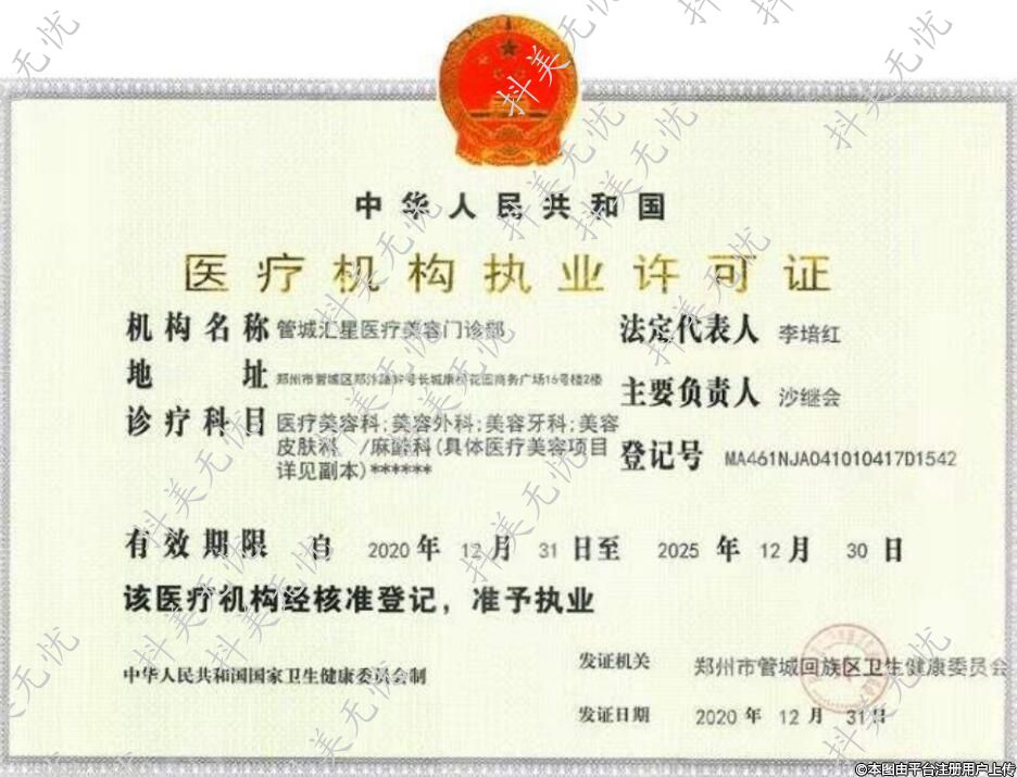 机构名称:管城汇星医疗美容门诊部