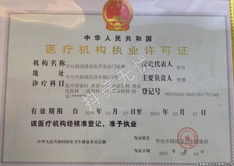医疗机构名称:怀化鹤城德美医疗美容门诊部