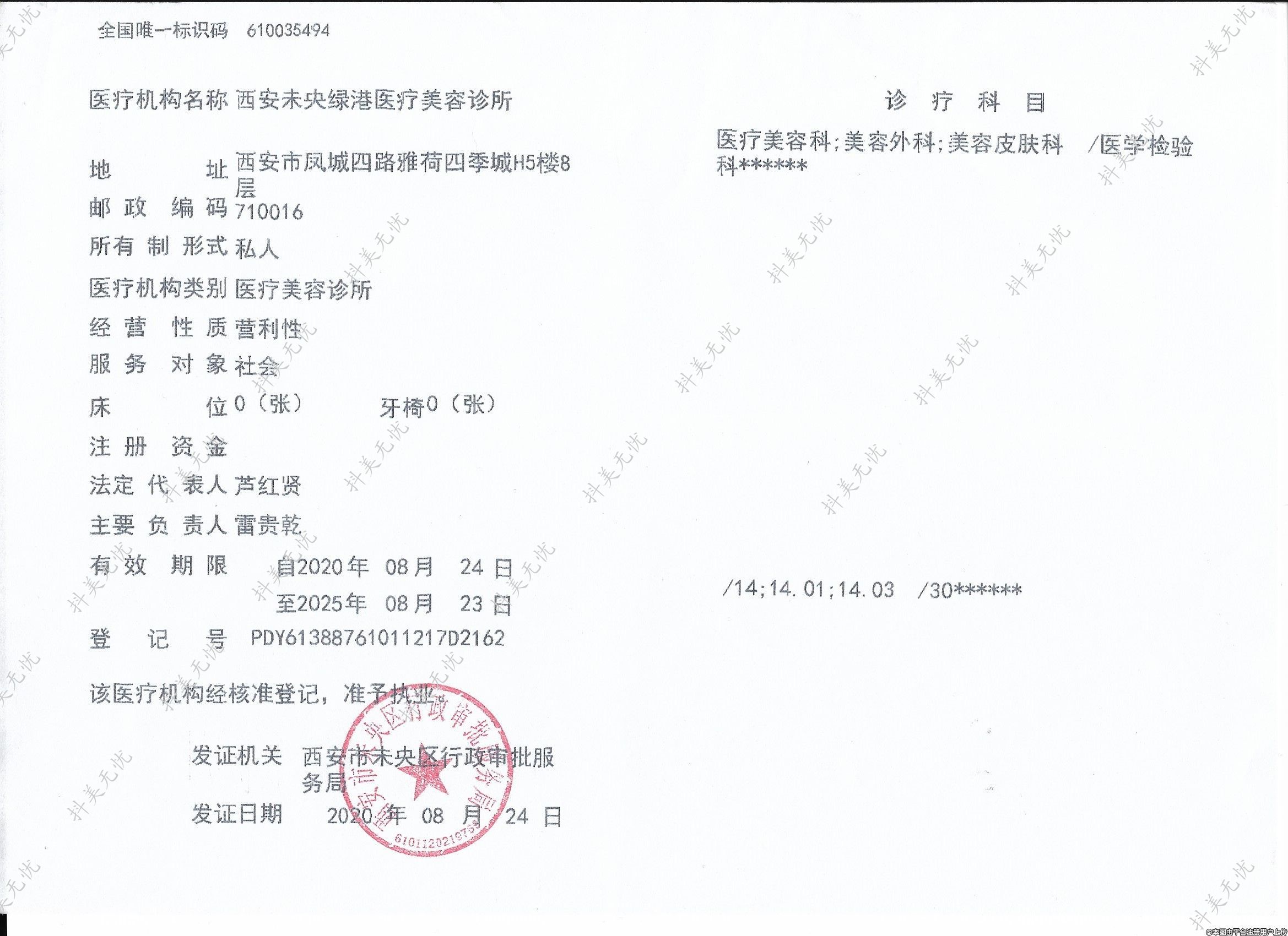 诊疗科目:医疗美容科;美容外科;美容皮肤科/医学检验科******