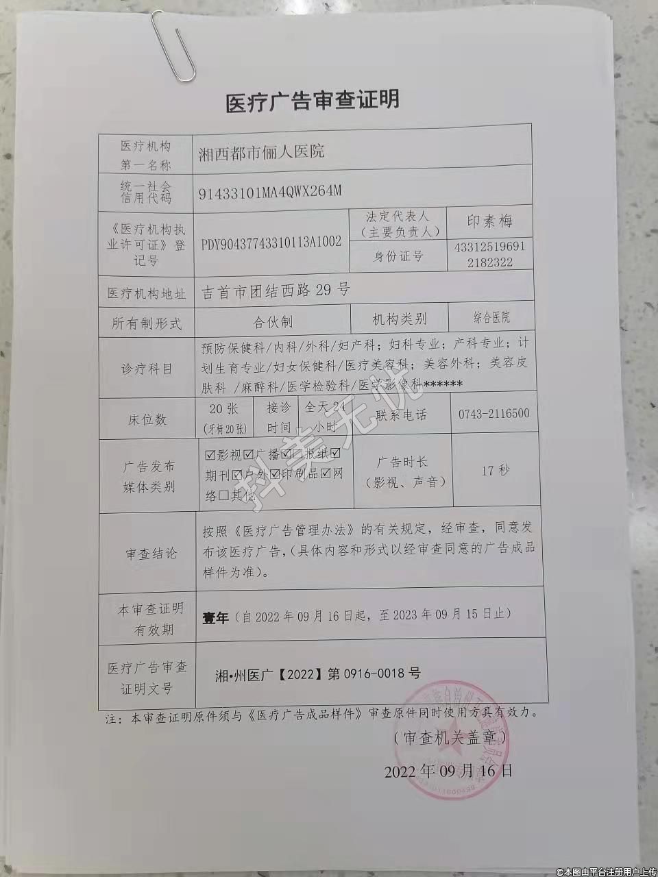 诊疗科目:预防保健科/内科/外科/妇产科;妇科专业;产科专业;计划生育专业/妇女保健科/医疗美容科;美容外科;美容皮肤科/麻醉科/医学检验科/医学影像科******