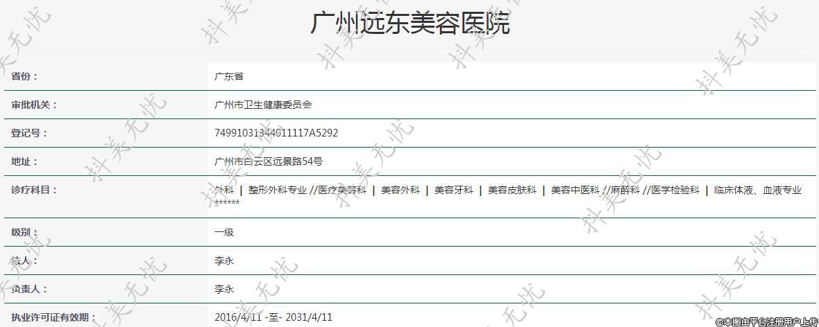 广州远东美容医院由广州市卫健部门严格审批成立的广州一家美容专科医院。医院位于白云区机场西侧远景路54号,面积2000余平方米,设有整形美容外科、激光光子治疗中心,正牙外科美容治疗中心、生活美容中心、中医美容中心,配有放射科、B超、心电图、检验、乳腺检测、中西药房、恒温恒湿太空净化手术室、三星级的住院病房等机能科室,基本医院设备按二级甲等医院配置。