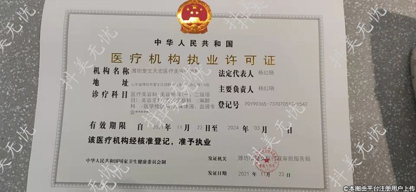 机构名称:潍坊天宏医疗美容门诊部