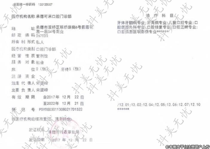 医疗机构名称:承德可米口腔门诊部
