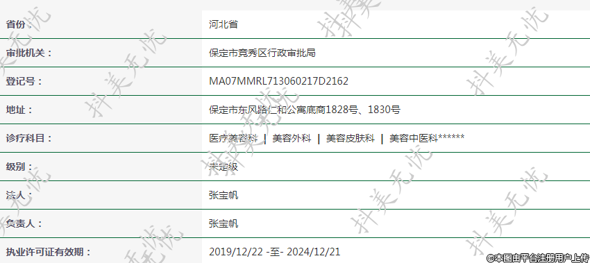 诊疗科目:医疗美容科 | 美容外科 | 美容皮肤科 | 美容中医科******