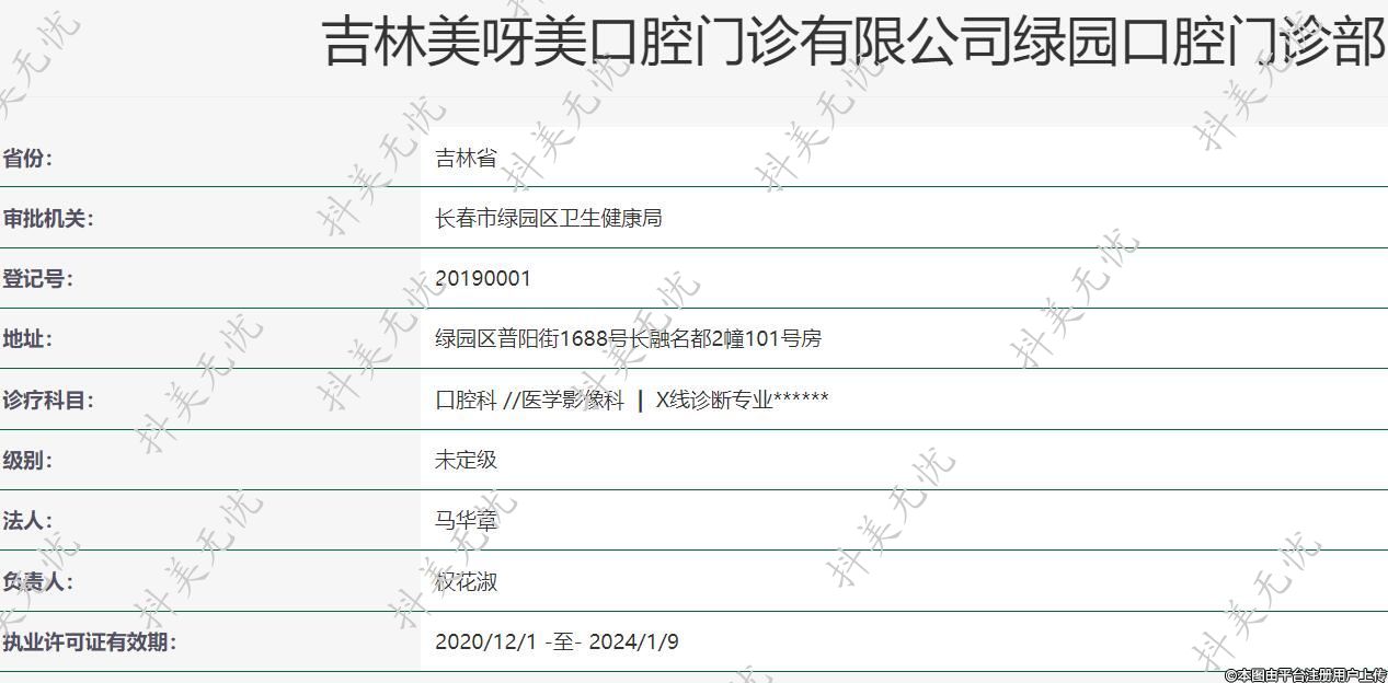 机构名称:吉林美呀美口腔门诊有限公司