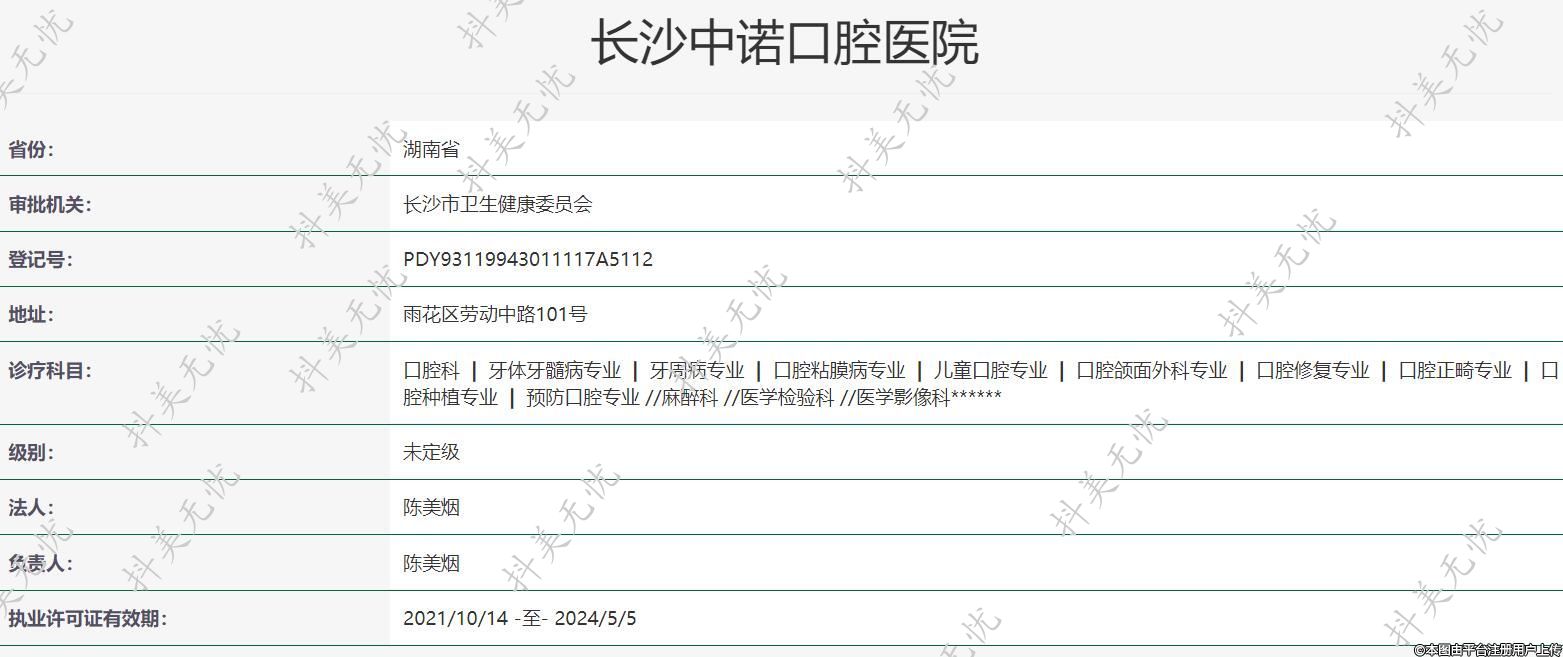 机构名称:长沙中诺口腔医院