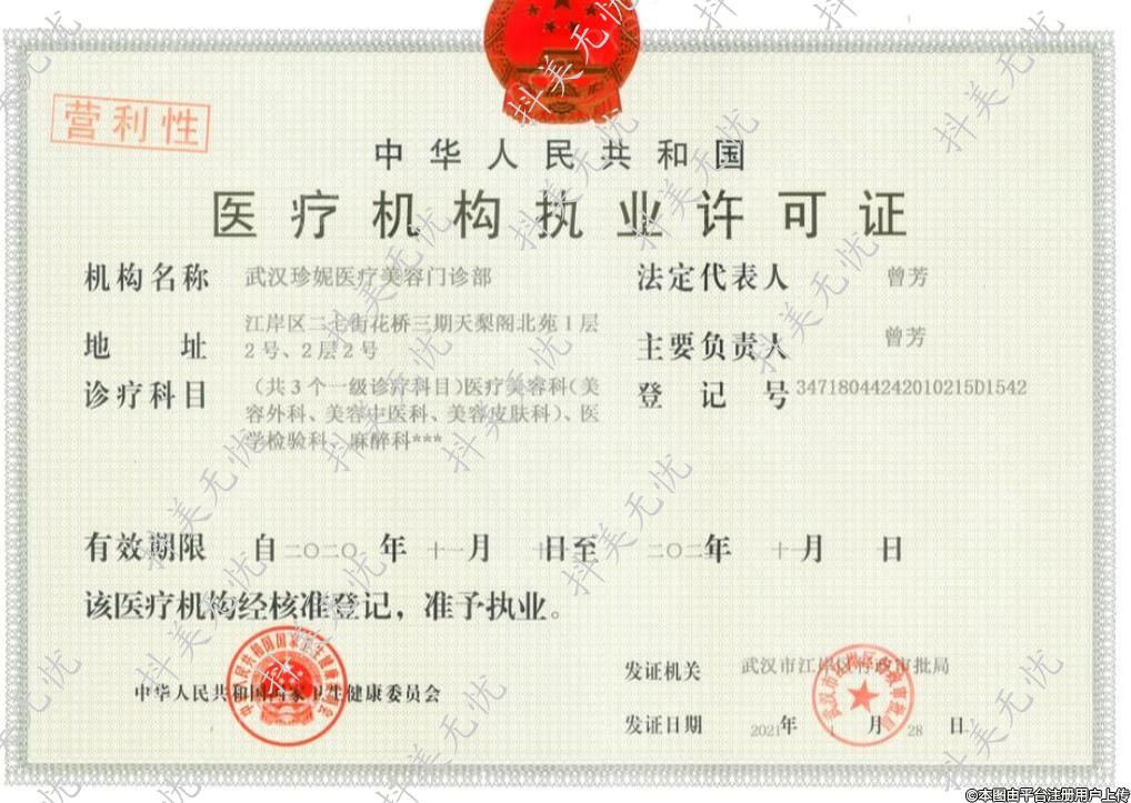 诊疗科目:(共3个一级诊疗科目)医疗美容科(美容外科、美容中医科、美容皮肤科)、医学检验科、麻醉科***