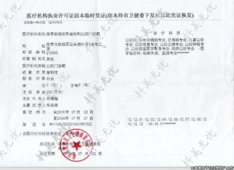 医疗机构名称:南京鼓楼维斯金铂利口腔门诊部