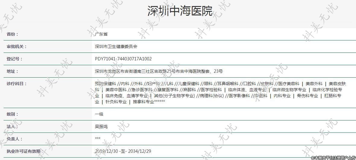 机构名称:深圳中海医院